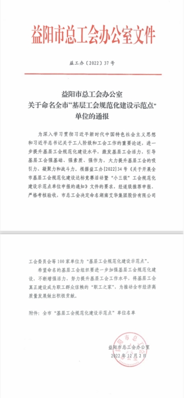 近日,益陽(yáng)市總工會(huì)辦公室發(fā)布《關(guān)于命名全市“基層工會(huì)規(guī)范化建設(shè)示范點(diǎn)”單位的通報(bào)》,市總工會(huì)決定命名100家單位為“基層工會(huì)規(guī)范化建設(shè)示范點(diǎn)”,益陽(yáng)市城市建設(shè)投資運(yùn)營(yíng)集團(tuán)有限責(zé)任公司工會(huì)委員會(huì)光榮在列!