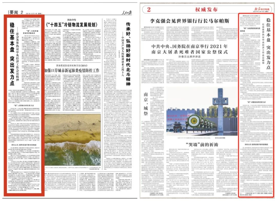 12月13日,新華社發(fā)表文章《穩(wěn)住基本盤 突出發(fā)力點(diǎn)——社會(huì)各界熱議中央經(jīng)濟(jì)工作會(huì)議精神》。